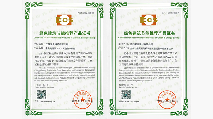 近日,經(jīng)中國(guó)工程建設(shè)標(biāo)準(zhǔn)化協(xié)會(huì)綠色建筑節(jié)能產(chǎn)品專家委員會(huì)審查、評(píng)定,江蘇雙良鍋爐有限公司(簡(jiǎn)稱“雙良鍋爐”)研發(fā)生產(chǎn)的全自動(dòng)燃油(氣)真空熱水機(jī)組、全自動(dòng)燃天然氣模塊組裝超低氮水管熱水鍋爐,符合相關(guān)要求,再度被授予“綠色建筑節(jié)能推薦產(chǎn)品證書”,在工程建設(shè)領(lǐng)域推薦使用。