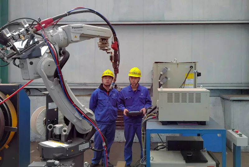 類似設(shè)備技術(shù)改造,吳昊參與完成的項(xiàng)目數(shù)不勝數(shù),比如雙絲埋弧焊焊接電器改造、所有埋弧焊機(jī)無(wú)線遙控改造、組隊(duì)滾輪架拼裝焊接改造、水管鍋筒焊接機(jī)器打磨、模式壁自動(dòng)焊的電焊機(jī)改造等項(xiàng)目。就在剛剛他又和機(jī)修師傅們一起完成一項(xiàng)火管車間管頭打磨機(jī)自動(dòng)化的改造,原來(lái)四五個(gè)人花費(fèi)幾天才能完成的人工打磨,現(xiàn)在只要一人調(diào)運(yùn)上管,按下啟動(dòng)全部自動(dòng)打磨好,省時(shí)省力節(jié)約成本。